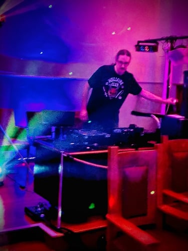 DJ iMosaicmix spinning at Vallejo Goth Night in the historic Odd Fellows' Grand Ballroom!